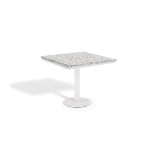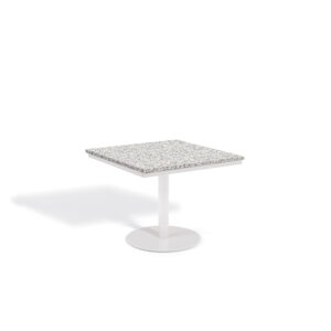 Electroplated steel is used in the construction of the Travira pedestal bar and bistro tables. The durability and weight of electroplated steel help stabilize the outdoor pedestal tables for commercial environments. The combination of electroplated steel with the accent of the other materials in Travira pieces create a striking contemporary design.