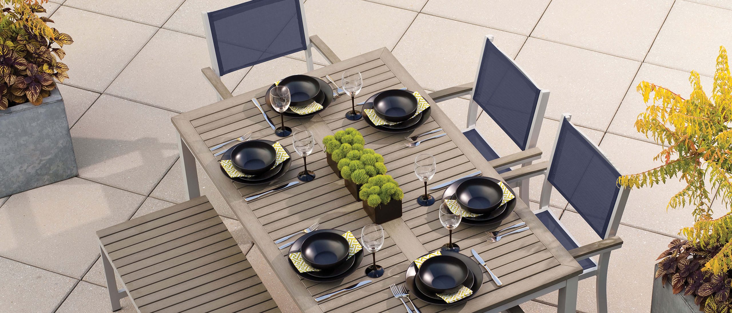 • Tekwood table top provides the look of teak with minimal weathering and maintenance