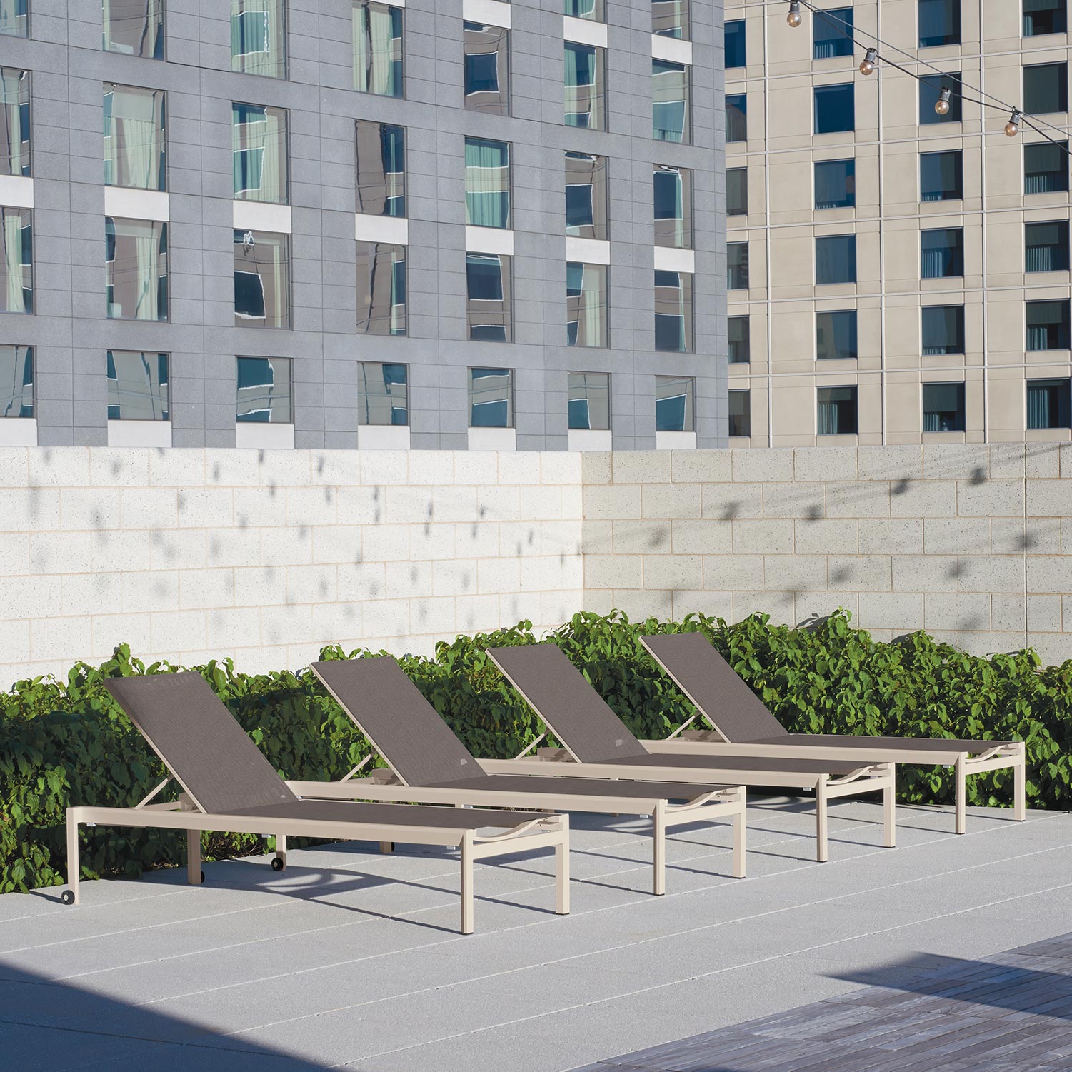 Maintain clean lines with this contemporary outdoor patio chaise lounge. Strong and durable, this chaise features four different reclining positions, including the option to lay flush. Chic and minimalist, this product is built to last with the comfort and versatility needed for any outdoor pool or lounge space.